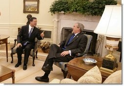 During the White House visit in October of 2005, Bush praised Fernandez and both said they discussed "multilateral institutions" helping the Dominican Republic with "cash flows and cash demands" - in other words American and international cash giveaways for the Dominican Republic. They also discussed the stalled CAFTA agreement, which was being held up. It sounded like a trade: The Dominican Republic would expedite CAFTA and Bush would expedite aid money. [68]